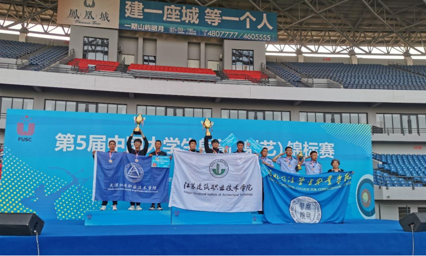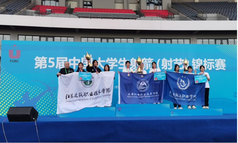 (上图为传统弓高职组男子团体淘汰赛第一名颁奖仪式)