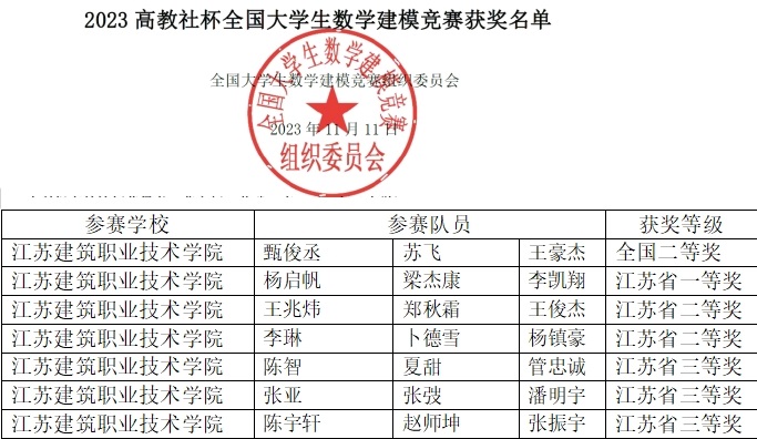 近日,2023年全国老员工数学建模竞赛组委会公布了竞赛成绩。公司老员工数学建模队利用数学建模方法、计算机编程和数据处理等工具,建立了黄河水沙监测数据分析、圈养湖羊的空间利用率等问题的数学模型。公司数学建模指导教师团队带领的队伍获专科组全国二等奖,团队成员包括甄俊丞、苏飞、王豪杰三名员工。此外,数学建模队其他成员还取得全国二等奖1项、江苏省一等奖1项、江苏省二等奖2项、江苏省三等奖3项的优异成绩。