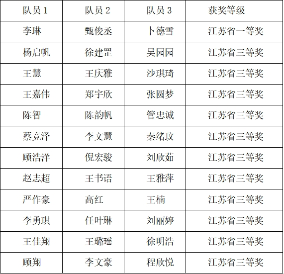 近日,第二十一届五一数学建模竞赛组委会经过初评、网评、会评和复审等环节,最终公布了获奖名单,公司beats365官方网站数学建模团队指导的参赛队获得江苏省一等奖1项,三等奖11项的优异成绩。