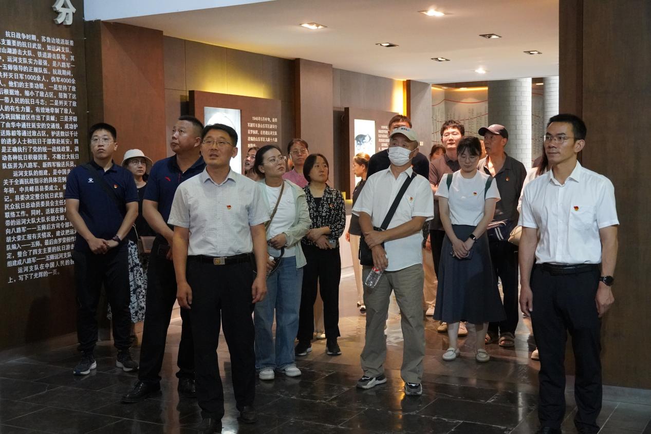 在运河支队抗日纪念馆庄严肃穆的展厅内,大家认真参观了珍贵的历史图片、文献资料和革命文物,聆听了讲解员对运河支队英勇抗战事迹的详细介绍。一幅幅生动的画面、一件件承载历史的实物,将党员们带回了那段烽火连天的岁月,深刻感受到了革命先辈们浴血奋战、舍生忘死的崇高革命精神。